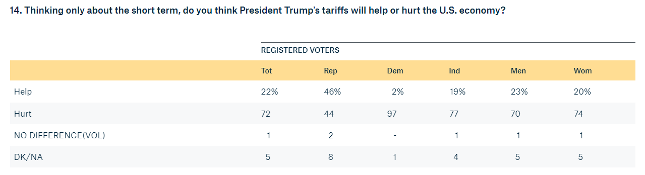 △民调结果显示,72%受访者认为加征关税将在短期损害美国经济
