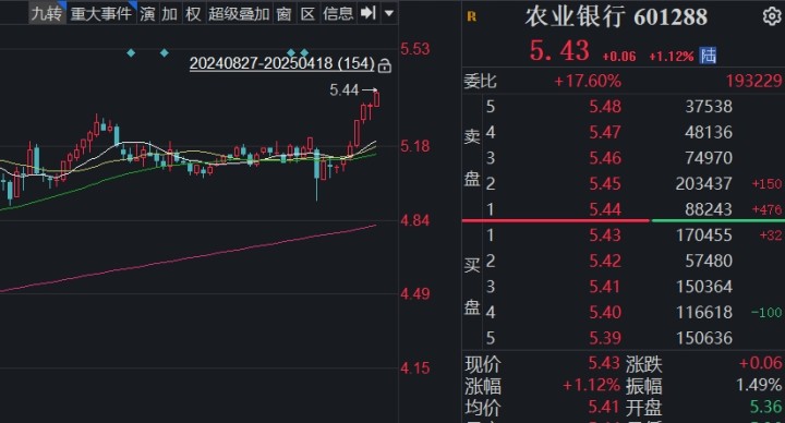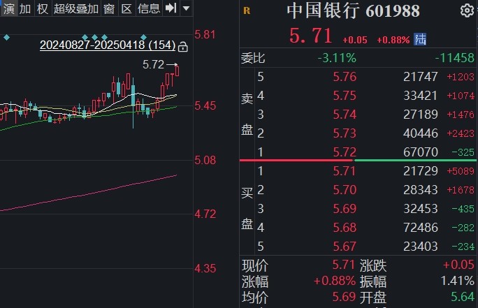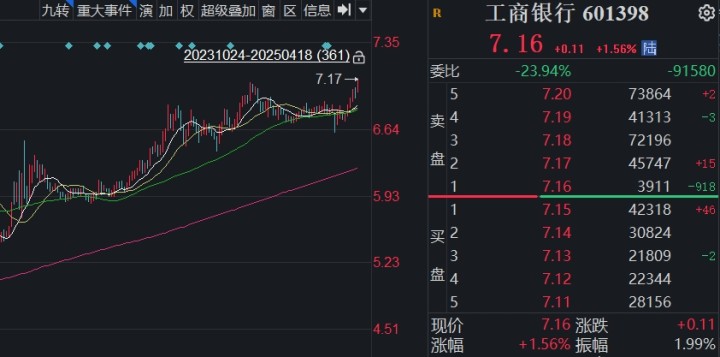 橙柿互动讯 今日,A股陷入震荡盘整走势,银行板块逆市走高,工商银行、农业银行、中国银行、建设银行四大行股价再创历史新高。