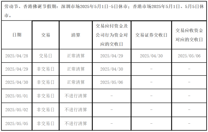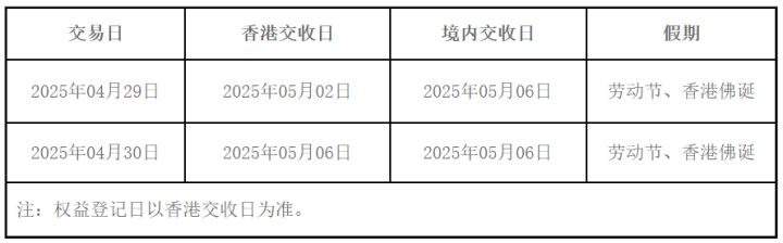 九、2025年劳动节期间H股“全流通”业务交收安排: