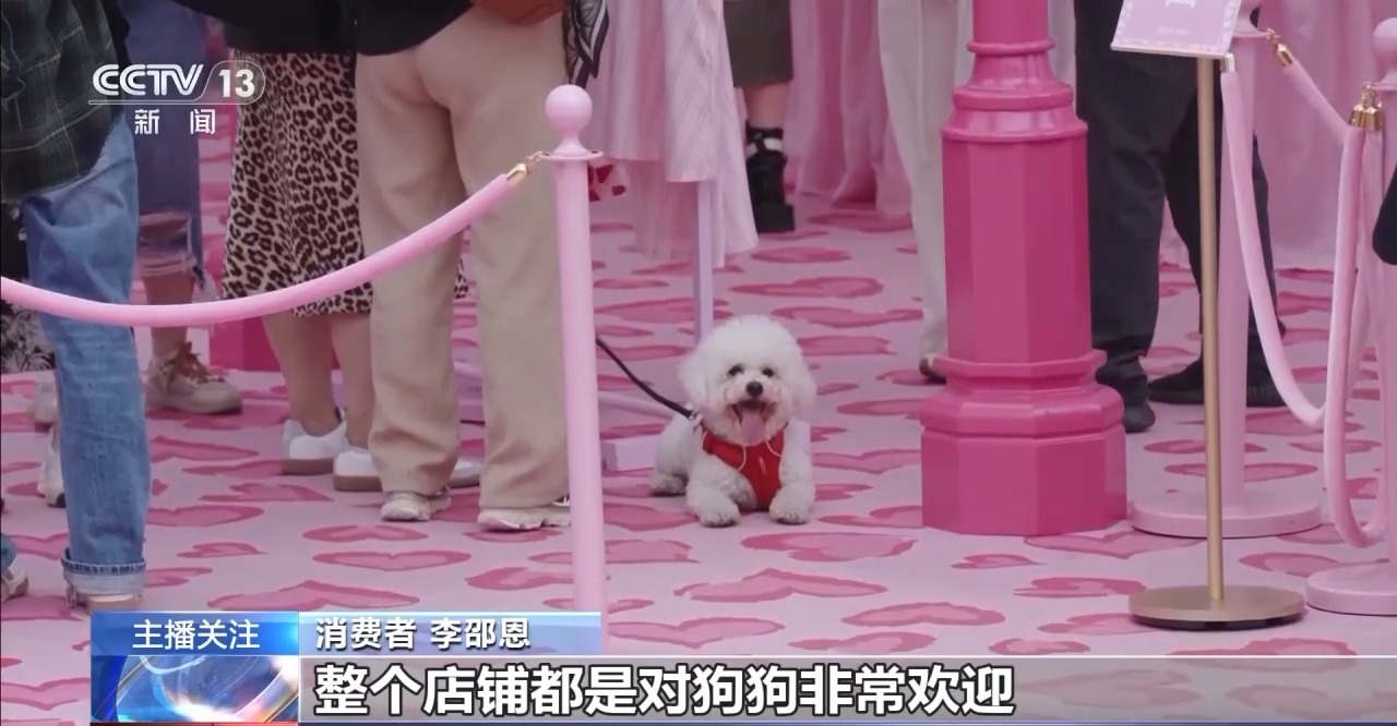 消费者 李邵恩:来打卡一些咖啡店还有吃的,还可以一起遛狗。我觉得这边服务特别特别好,整个店铺对狗狗都很欢迎,所以我们都放心带来这边。