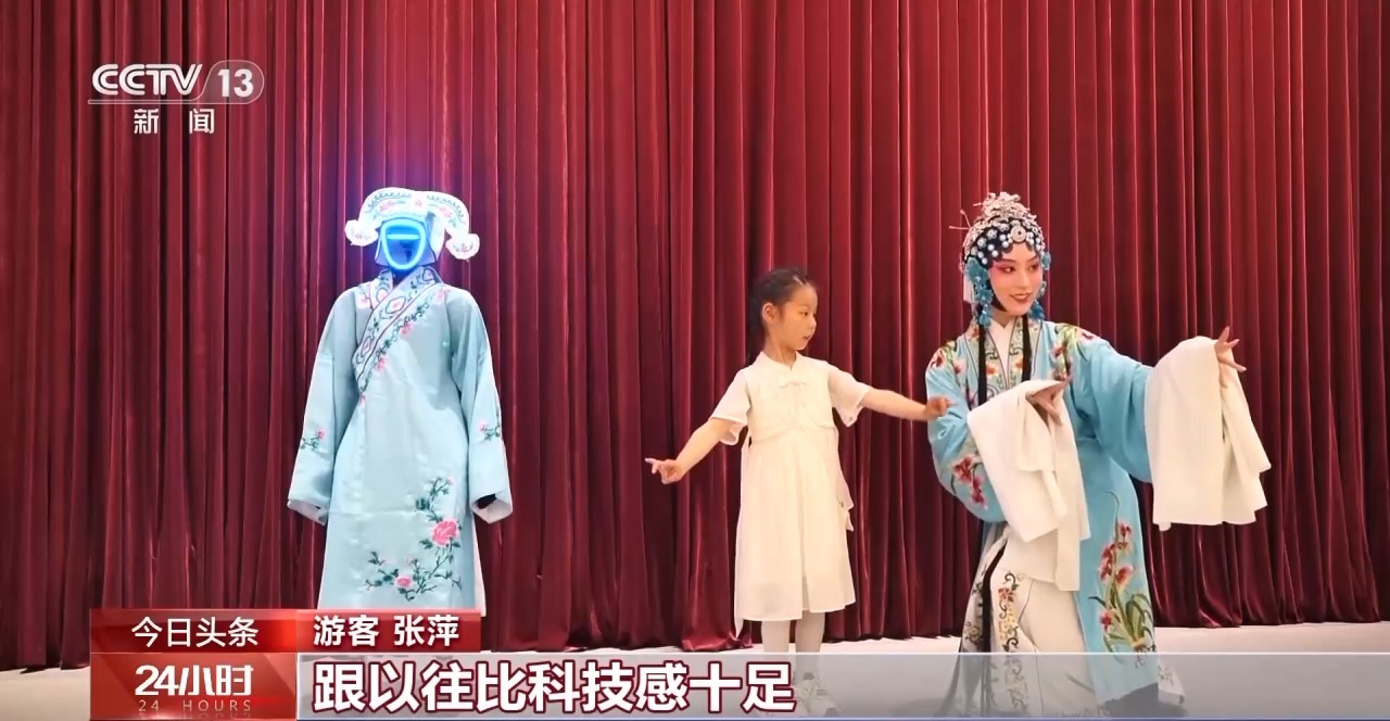 “五一”假期,江苏盐城建湖九龙口淮剧小镇化身科技戏台,机器人演员与梨园名家同台献艺、默契共舞。