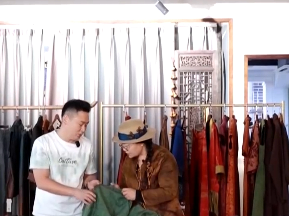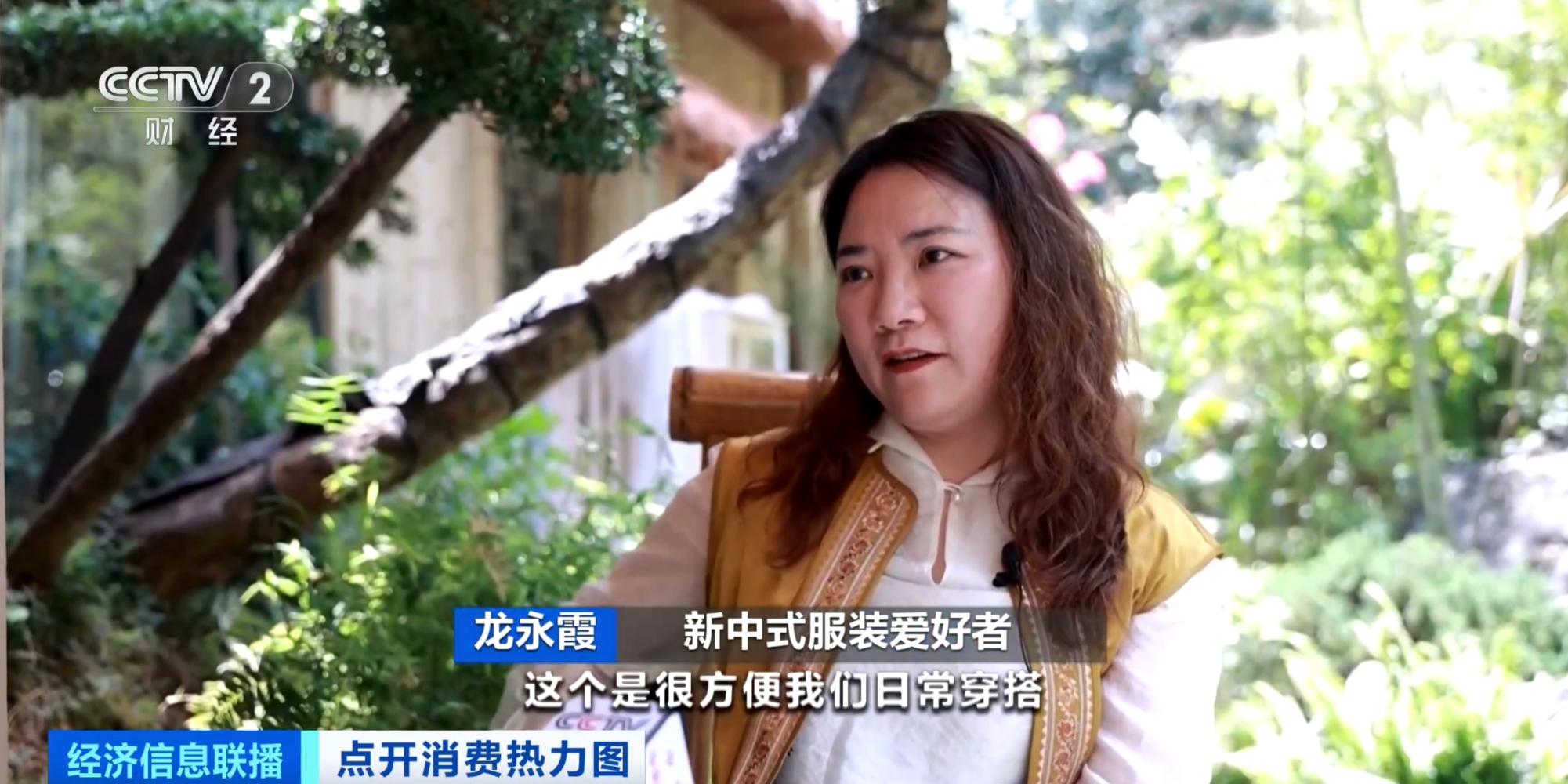 新中式服装爱好者 龙永霞:这件衣服有口袋,我可以放手机,也可以放点其他东西,方便我们日常穿搭。