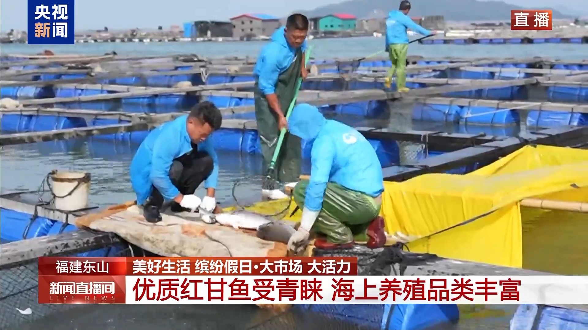 看过了石斑鱼,再来看看它的邻居——红甘鱼。红甘鱼的重量接近12斤,它们一般是作为生鱼片来食用的,口感非常鲜嫩,这两年也愈发受到了消费者的欢迎。东山县岐下村的养殖渔排,今年以来,红甘鱼的销量已经达到160吨,同比增长5%。