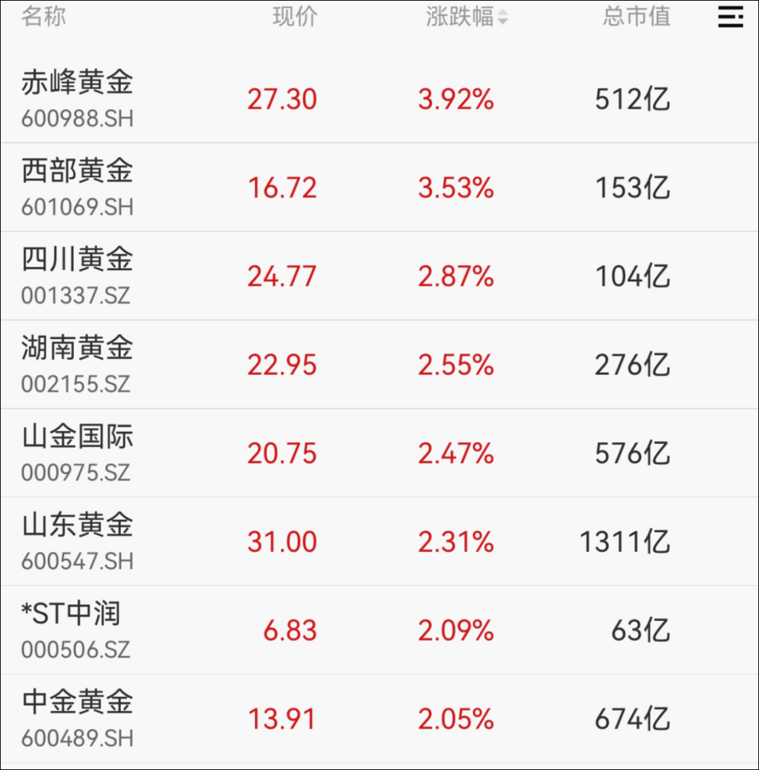 超过4400多只股票上涨。其中,贵金属板块竞价活跃,赤峰黄金开涨近4%,晓程科技、西部黄金等均涨超3.5%,四川黄金、湖南黄金等跟涨。
