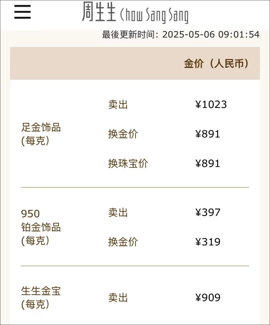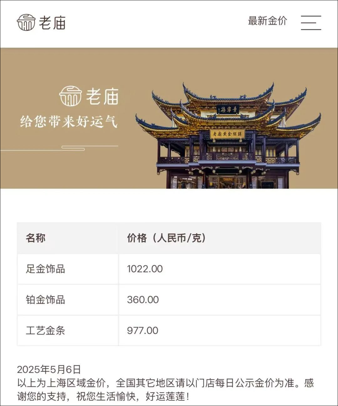 国内各品牌金饰价格也随之上扬,不少品牌克价再次突破千元。中新经纬6日查询发现,周大福金饰价格为1026元/克,较前一日上涨28元/克;周生生金饰价格为1023元/克,较前一日上涨23元/克;老庙黄金金饰价格为1022元/克,上涨31元/克。