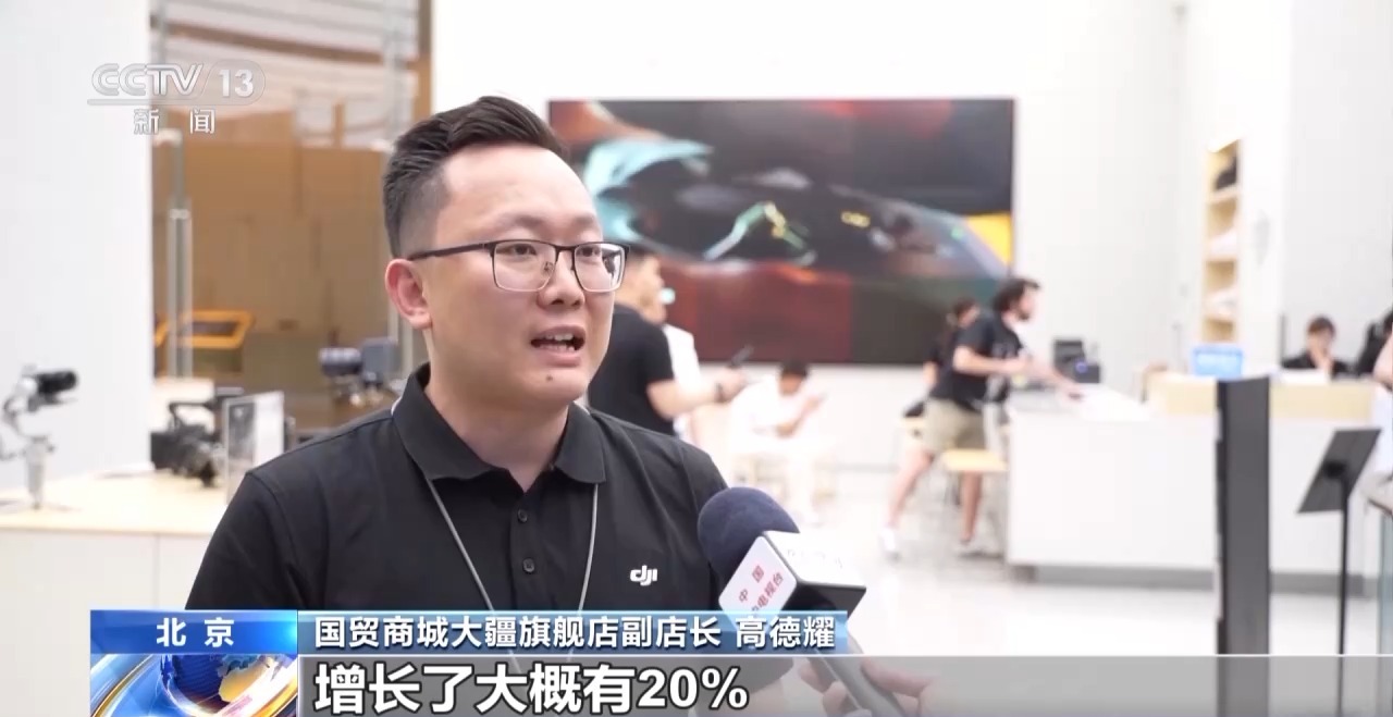 国贸商城大疆旗舰店副店长 高德耀:5月份销售额比4月份增长了大概有20%。90%多的外国人都会去办理退税。