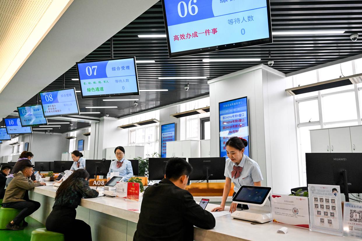2025年4月16日,在内蒙古鄂尔多斯市东胜区政务服务中心,工作人员办理民营企业相关业务。新华社记者 李志鹏 摄