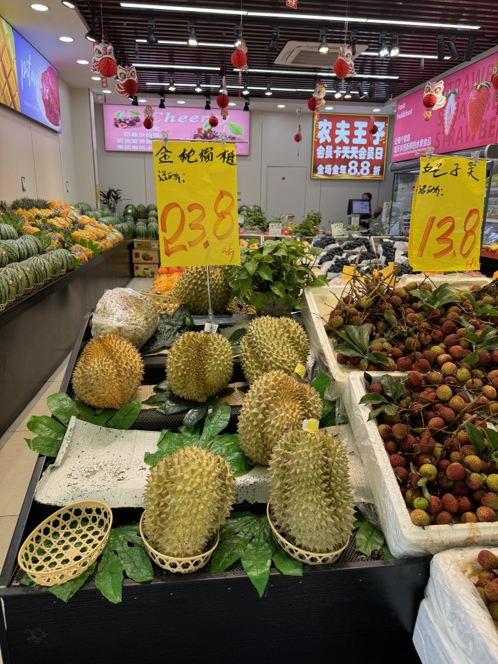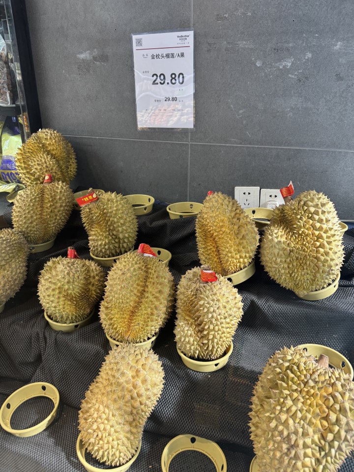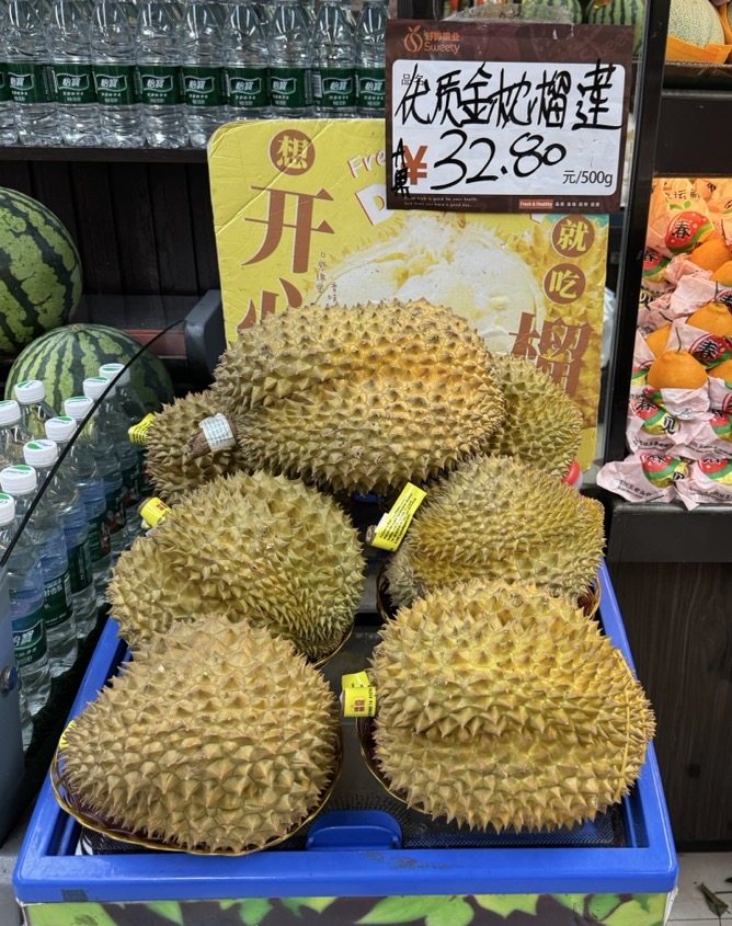 据报道,北京新发地泰国金枕榴莲批发价从一个月前的每箱1100-1200元(32斤)降至730-780元,降幅近40%-50%。部分口岸城市(如青岛、广州)批发价甚至低至18-20元/斤。
