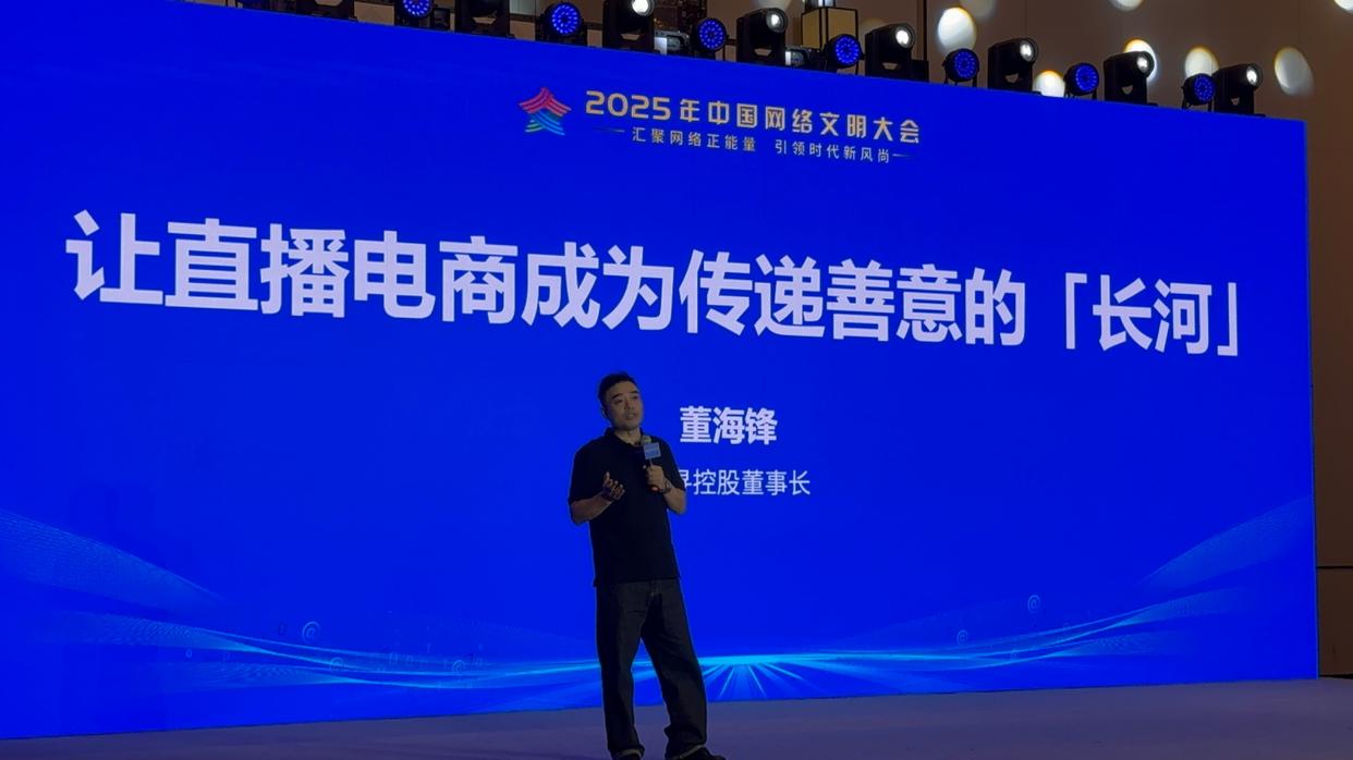 6月10日至11日,以“汇聚网络正能量 引领时代新风尚”为主题的2025年中国网络文明大会在安徽合肥隆重举行。谦寻控股董事长董海锋受邀在“互联网企业社会责任”论坛发表《让直播电商成为传递善意的“长河”》的主题演讲,系统阐述了谦寻控股以“直播向善”为核心,在消费、人文、智能三个维度构建公益新模式的探索与实践。