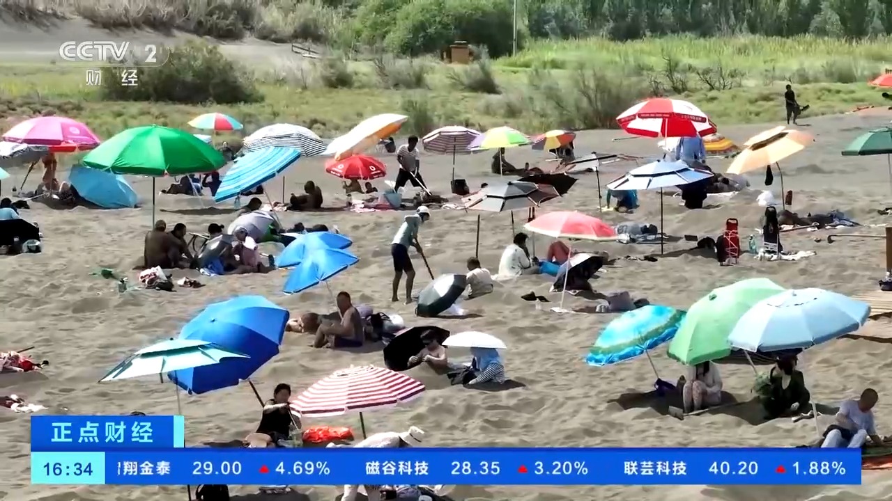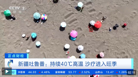 眼下,新疆吐鲁番市每日的最高气温在40℃以上,高温天气使得当地的沙疗进入了旺季。