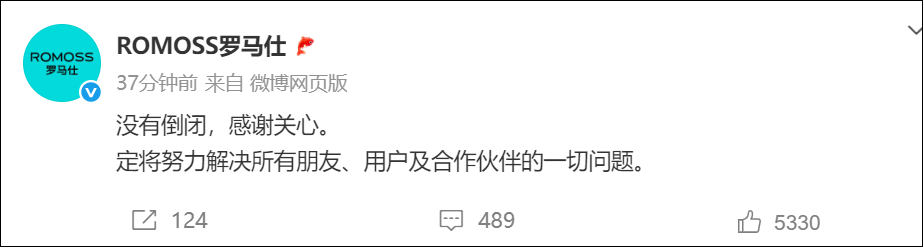 7月3日深夜,@ROMOSS罗马仕发文: