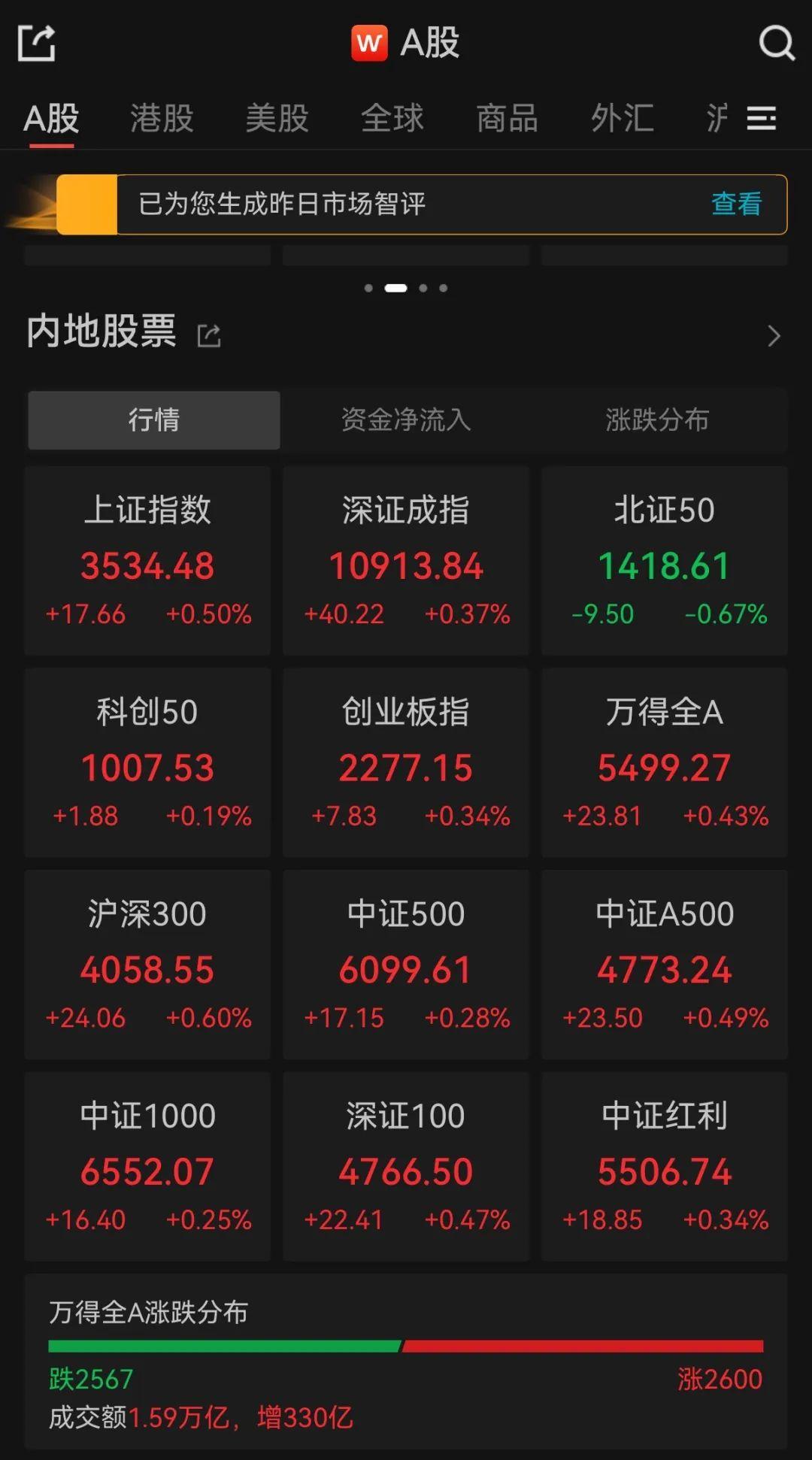 两市成交额超1.5万亿,全市2600只个股上涨。