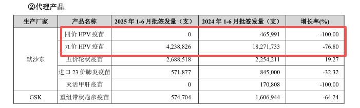 而作为默沙东HPV疫苗在中国的独家代理商,2025年上半年,智飞生物代理产品收入占总收入比重约88%。财报显示,智飞生物代理的默沙东的四价HPV疫苗和九价HPV疫苗,在上半年批签发量分别为0支、423.88万支,分别同比下降100%、76.8%。