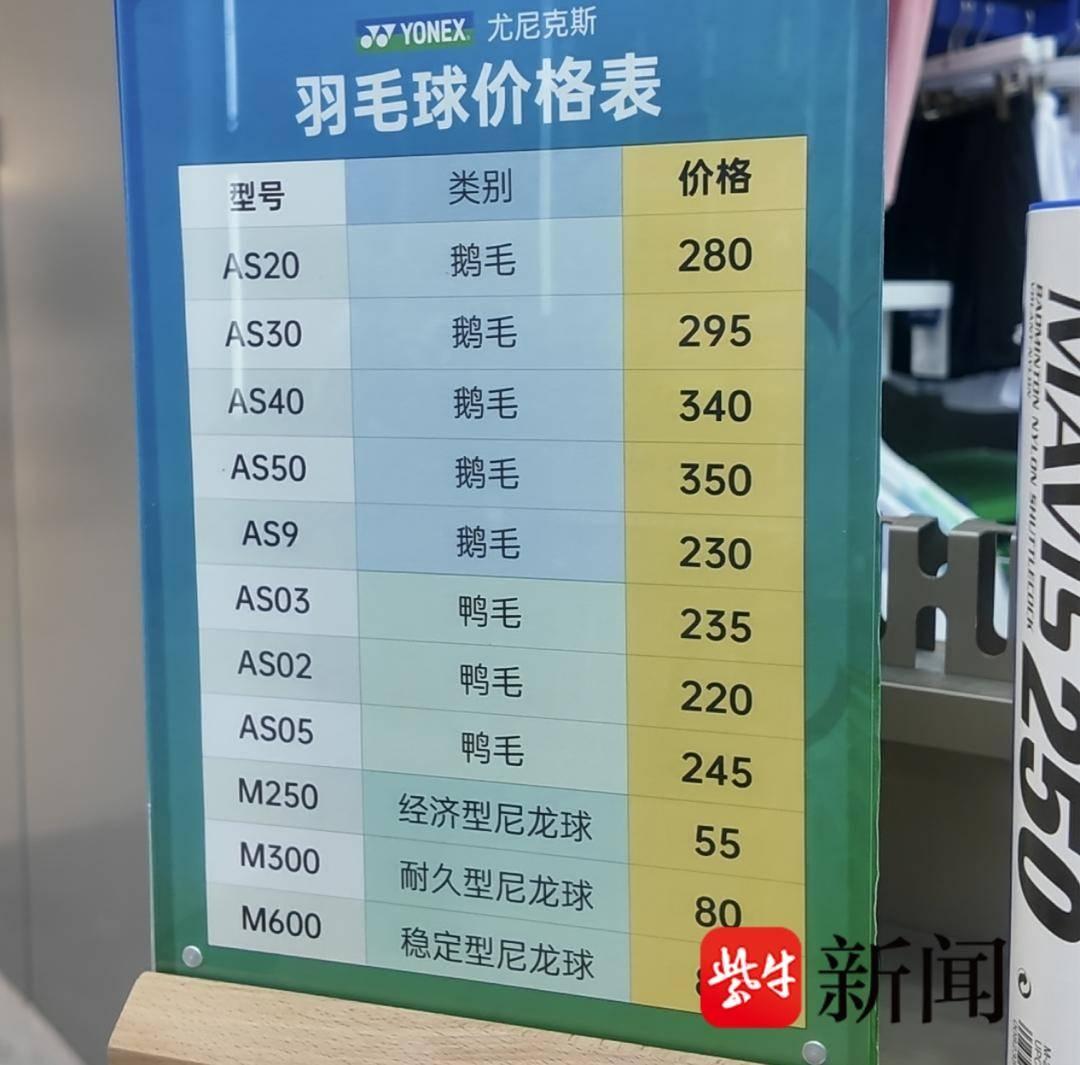 9月9日,记者在羽毛球头部品牌尤尼克斯位于南京的一家线下门店发现,价格表显示,最贵的是型号AS50类别为鹅毛的羽毛球,每桶350元。算下来,3桶这种高端球就是1050元。9月12日,记者发稿前查询周大福足金价为1078元/克。这意味着,3桶羽毛球价格快赶上1克黄金了。