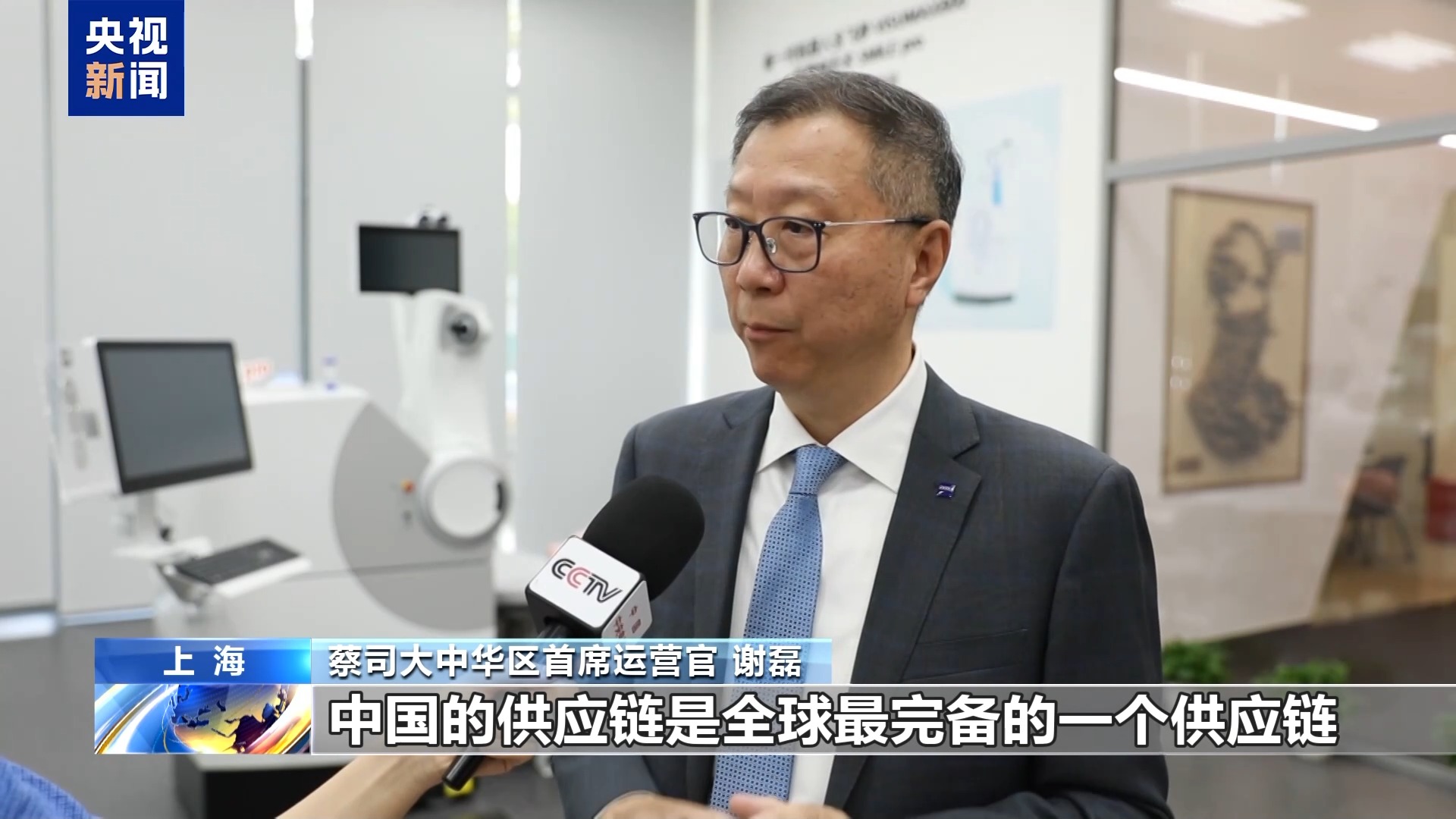 蔡司大中华区首席运营官 谢磊:中国的供应链是全球最完备的链,能够助力和加速我们的创新转化成我们的产品。在未来我们的创新中心会扩大,在中国的高端产品的研发也会增加。