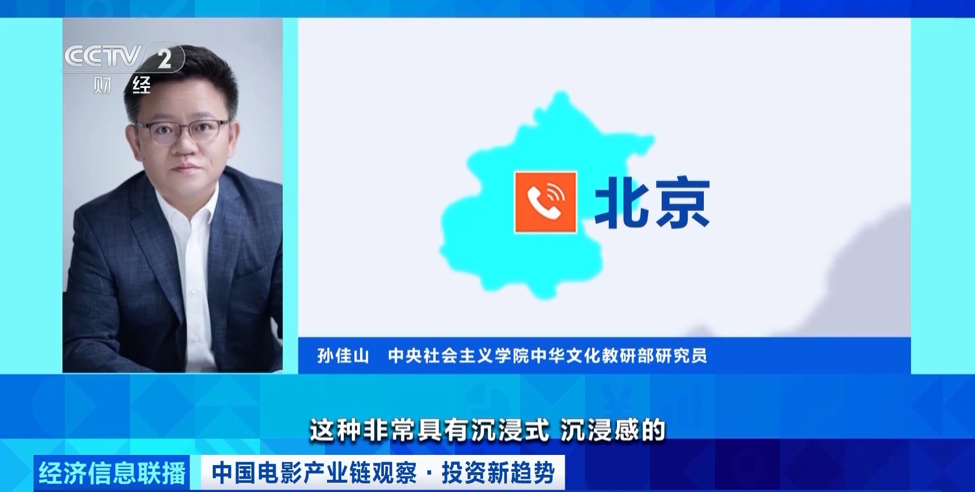 中央社会主义学院中华文化教研部研究员 孙佳山:3D、4D观影体验,包括和增强现实技术相结合的具有沉浸式、沉浸感的相关文旅体验项目,其实都是电影产业发展外溢效应的鲜活缩影。从投资的角度来看,对于电影项目的选择越来越宽泛,将文化和科技有效融合的效能释放出来。