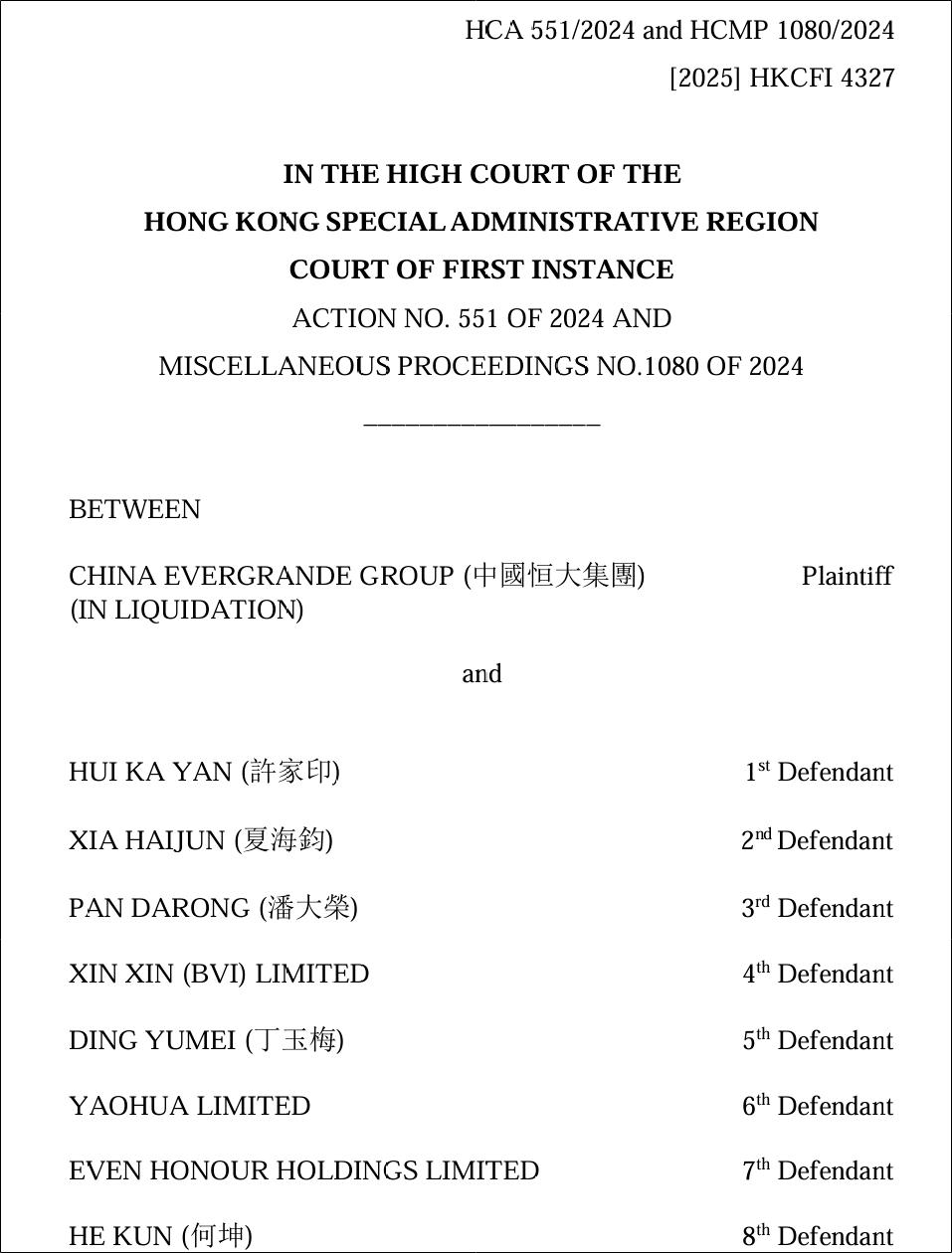此前,香港高等法院还同意了中国恒大的清盘人的请求,要求许家印必须向清盘人告知其所有单项价值不低于5万港元的资产(包括但不限于以本人名义/他人名义持有、境内/境外资产),以及被禁止处置的资产是否已被出售等情况。