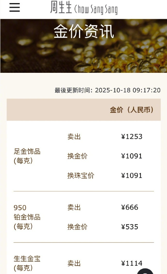 国内品牌金饰同步下跌,查询到周生生足金饰品报价1253元/克,相比昨日1281元/克下调28元/克,老庙黄金足金饰品报价1262元/克,相比昨日1279元/克下调17元/克;老凤祥足金饰品报价1258元/克,相比昨日1280元/克下调22元/克。