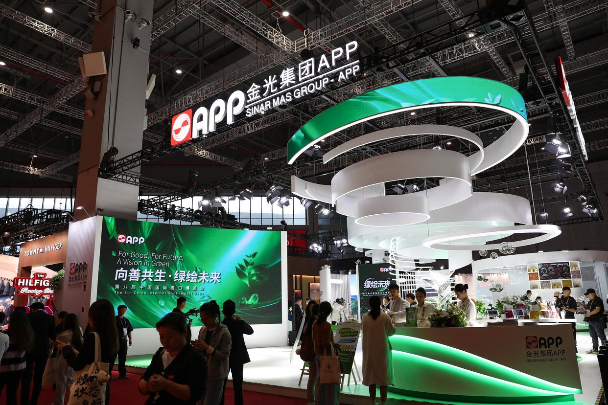 这是11月7日在消费品展区拍摄的金光集团APP展台。金光集团APP是进博会八届“全勤生”。新华社记者 王婧嫱 摄