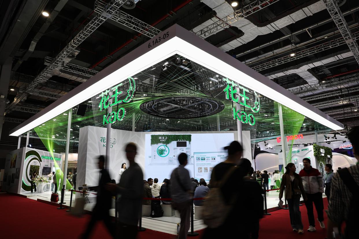 11月7日,参观者走过位于消费品展区的日本花王集团展台。花王集团是进博会八届“全勤生”。新华社记者 王婧嫱 摄