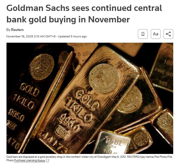 高盛还提到,各国央行可能在今年11月购买大量黄金,这一趋势已持续多年,旨在通过储备多元化来对冲地缘政治和金融风险。