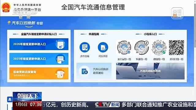 此外,消费者可以通过电脑登录“全国汽车流通信息管理系统”,点击“汽车以旧换新”专题进入申请页面。也可以在相关网络平台的“汽车以旧换新”小程序上进行申请。