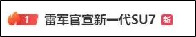 1月7日,#雷军官宣新一代SU7#冲上热搜第一。