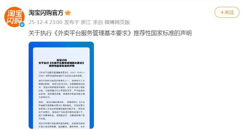 淘宝闪购、美团、京东外卖发布声明:将自愿执行!