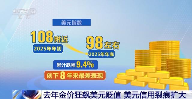 金价狂飙、美元贬值,美元在全球外汇储备中的占比连续下滑。2025年,美元信用遭遇严重挑战。