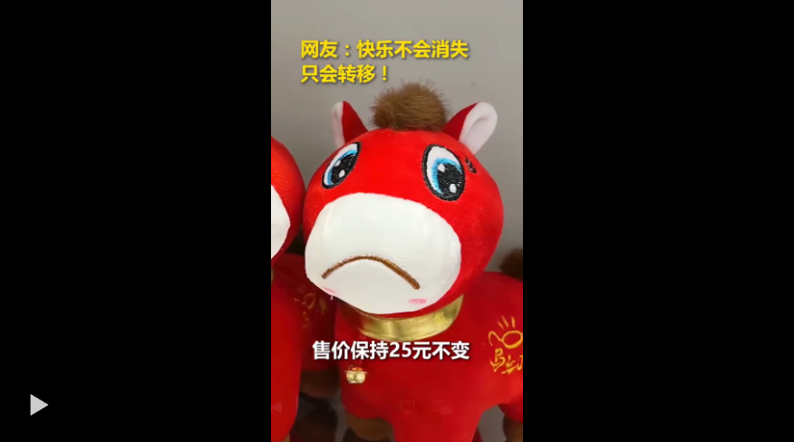 近日,工人生产的马年吉祥物误将上扬的嘴角缝反成下撇,委屈呆萌的表情意外走红,相关订单暴增。老板娘张女士表示:已经增开10到12条生产线,订单排至3月了。
