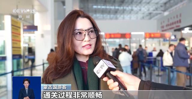 蒙古国游客:通关过程非常顺畅,节省了很多时间。我们一直被中国深厚的传统文化吸引,这次特意赶来体验春节的热闹氛围,期待感受贴春联、吃年夜饭、逛庙会的独特魅力。