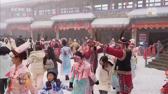 在四川绵阳北川的羌寨雪场,轮胎滑雪道上游客尽情地享受着俯冲的感觉,雪地里堆雪人、打雪仗的欢声笑语回荡在山林间。冰雪玩乐尽兴之余,在羌族同胞热情引导下,游客学羌族传统礼仪,大家手拉手围成圈跳起羌族沙朗,在欢快舞步中感受民族文化的独特魅力。