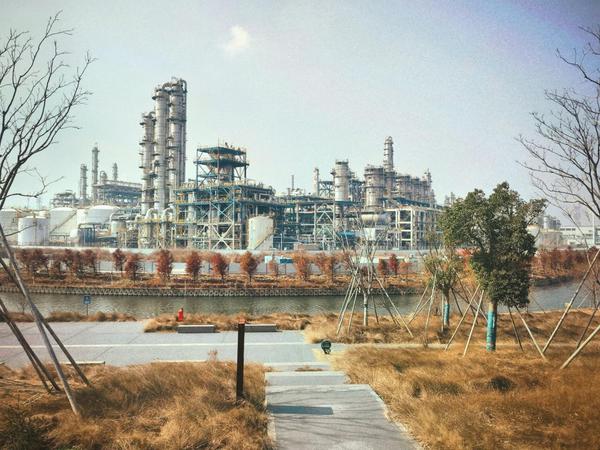 记者跟随游客来到这片石化工业区外围,但见现代化的厂区与周边生态廊道相邻,硬朗的工业设施与自然湿地辉映成趣,呈现出一种独特的视觉体验。到了夜晚,随着厂区内灯光依次亮起,炼塔与管道被暖黄色的灯光勾勒出清晰轮廓,倒映在附近的水面上,更为壮观。