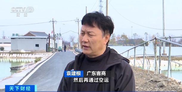 广东客商 袁建根:今天我先用汽车装到虹桥机场,然后再通过空运送到广州当地的养殖户手里。