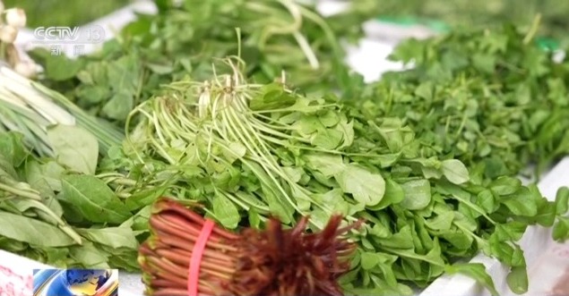 记者在南京的一家菜市场看到,各色时令春菜品类丰富,不少市民在挑选新鲜的菊花脑。