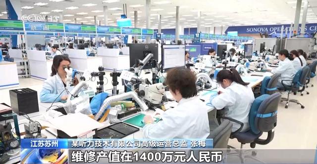 总台央视记者 叶奂:传统的加工贸易主要是从国外买原材料或者零部件,在国内进行加工组装成品之后再出口,主要赚的是“加工费”。而如今的“保税维修”外贸新业态,可以说是加工贸易的升级版和高质量版,因为它聚焦电子产品、医疗器械等产业,开展售后检测维修等等业务,赚的不仅仅是“加工费”,同时还有技术服务费。