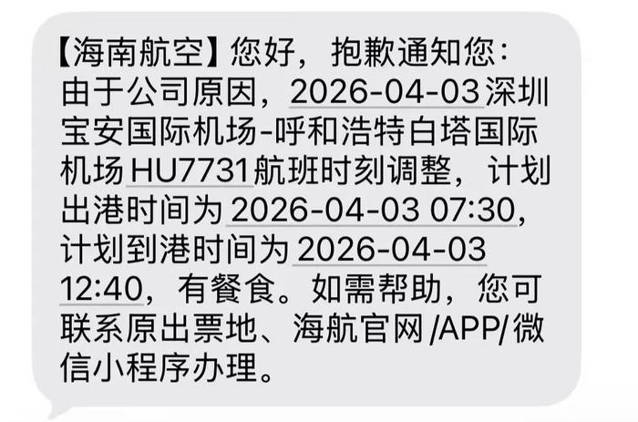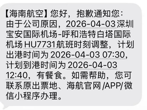 中国新闻周刊消息 19岁大学生胡双(化名)计划了一次短途旅程,4月3日早上7点40分从深圳飞往呼和浩特。起飞前数日,他接到海南航空通知,航班将提前十分钟起飞。