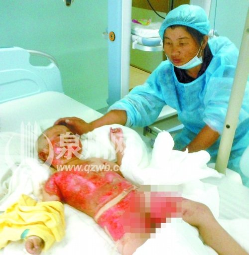 秀秀的主治医生介绍,秀秀烧伤面积达26%,面部、颈部、躯干、臀部、四肢等部位几乎都被烧伤。“一般来说,小孩只要烧伤面积达15%,就属于重度烧伤。她的情况特别严重,而且大部分属于深度烧伤,病情非常严重。”
