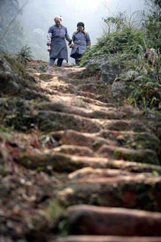 整整50年,铁铣凿烂了20多把,这都是他一手一手凿出了6000多级的阶梯,每一级的台阶都不会长出青苔,因为只要下雨过后他都会用手搽过,这样一来就不会滑……而他,也从一个年轻人变成了一个白发老翁。