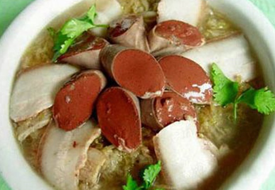 白肉血肠是闻名东北的地方菜。以猪肉、血肠为主要原料,吃起来肥而不腻,瘦而不柴,血肠脆嫩绵软,热汤鲜香味醇,作料五味俱全,脍炙人口,驰誉吉林食苑已有几百年历史。白肉血肠选料考究、制作精细、调料味美;白肉肥而不腻、肉烂醇香、血肠明亮、鲜美细嫩;配以韭菜花、腐乳、辣椒油、蒜泥等佐料,更加醇香四溢,鲜嫩爽口,十分美味。