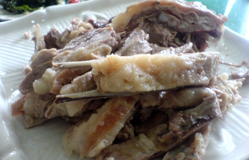 御土荷叶鸡原名叫化鸡,传到承德后,因选用承德特有的离宫黄土、热河泉水和湖内的荷叶作原料精制而成,故名“御土荷叶鸡”。御土荷叶鸡味道鲜美,尤其是那一股独特的、淡淡的荷叶清香,更令你胃口大开,回味绵长。制作时,将宰后的生鸡,由腋下取出五脏,洗净,不褪毛,用荷叶包好,再用黄土泥糊好,放在火上烧熟。熟后摔开泥土,鸡毛随之脱落。吃时用刀、叉割成小块,蘸着调味品吃,味道鲜嫩爽口,渗着荷叶幽香,别具风味。菜品口感:炸烧味入口酥烂肥嫩,风味独特。