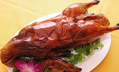 北京烤鸭是具有世界声誉的北京著名菜式,用料为优质肉食鸭北京鸭,果木炭火烤制,色泽红润,肉质肥而不腻。北京烤鸭分为两大流派,而北京最著名的烤鸭店也即是两派的代表。它以色泽红艳,肉质细嫩,味道醇厚,肥而不腻的特色,被誉为“天下美味”而驰名中外。