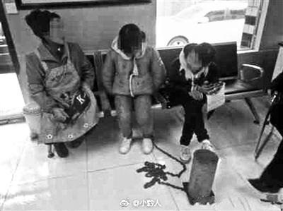 女儿经常离家出走,父亲一时情急,用一根两米多长的铁链,将一颗十余斤重的铁锭系在女儿的左脚上。这一幕发生在贵州贵阳云岩区宅吉路永安寺街附近。经当地派出所介入,帮女孩解开了铁链,并对其父亲进行批评教育,女孩也保证不再离家出走。但仅仅两天后,女孩又离家出走了,至今未归。