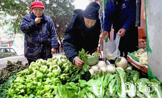 菜店老板说,周老寿星挑选蔬菜是一把好手。