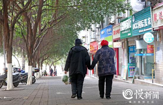 小区居民说,每天都能看到周作书买菜后牵着老伴回家。