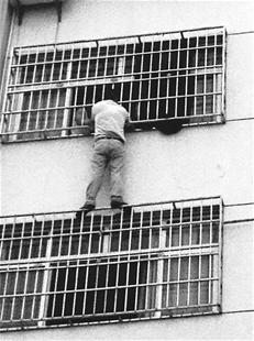 图为:刘加志站在4楼防盗网上救男童(通讯员龙庆摄)