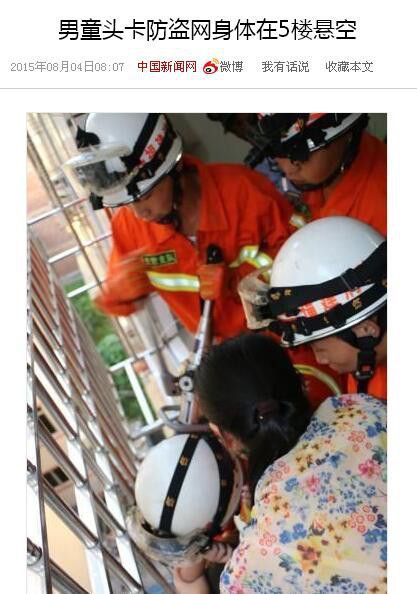 男童头被卡5楼防盗网 “托举哥”翻窗凌空救人