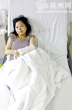 躺在病床上的吴菊萍 记者 贾代腾飞 摄