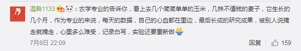 近日 在湖南农业大学浏阳基地 实习工作群里的这样一句话 让农业大学一个班的学生 陷入了深深的绝望 ...... 因为 他们种在浏阳基地里的玉米 被当地村民偷走了 ...... 同时也是他们参加科研竞赛的实验品 这一偷 整个班级的实验就没有了 更要紧的是 这其中还夹杂着一个同学的毕业设计 玉米没有了 这位同学很可能都毕不了业 有同学表示 他们还需10天才能考种 现在去测根本就不行 况且摘掉了 就更没法用了 除了造成实验材料缺失以外 这也对师生们造成了不小的经济损失 有老师表示 这玉米属于原种 如果真的拿到市场上去卖的话 可能要上千万 对于村民来说 这玉米只是几口就被吃掉的果腹之物 而对学生们来说 这不仅是价值连城的珍贵的科研材料 或许还包含着他们的科研梦 更是他们对科学的探索 想当初 他们满怀着期待种下种子 精心呵护它成长 但是在快要收获的季节 却被他人随意摘走 这能不让人难过吗 不少网友纷纷晒出了 自己以及身边人遇到的同款“悲惨”经历 被偷的有什么科研桃子、科研鸡 甚至还有存满实验数据的电脑 有网友表示感同身受 认为这样的行为简直太气人了 决不能纵容 就应该依法处罚 立牌牌? 有个同学为了防止别人偷菜 买了一条很凶的狗放在田里 结果 狗都不见了 ...... 小编倾情提醒 “路边的野花不要采 田里的玉米不要掰” 因为你随手摘的一颗菜籽 不仅很可能是他人辛苦工作的成果 具有着重要的意义 更可能会导致高额的经济损失 其实 不管是科研材料 还是简简单单一根玉米 但凡是别人的东西 我们都不应该随意拿取 洁身自律 每个人都应该做到!