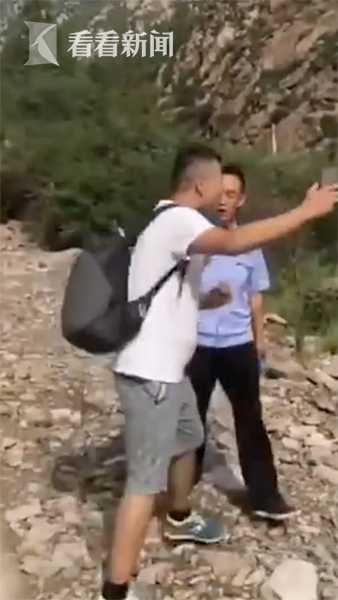 其中一名游客在拍摄视频的同时,不断地大声叫嚣:这就是五台山的秩序,广大网友们,你们要见证了。抖音的小伙伴们,你们看一下。当景区游客中心的工作人员要求其出示门票时,该男子称“你要是拦截我,就是限制我的人身自由。” 其中一名背包男子拿着手机,强行拉景区工作人员拍照,遭拒绝后依然没有停止。工作人员更是无奈怒斥,“不要故意挑衅我的工作”。